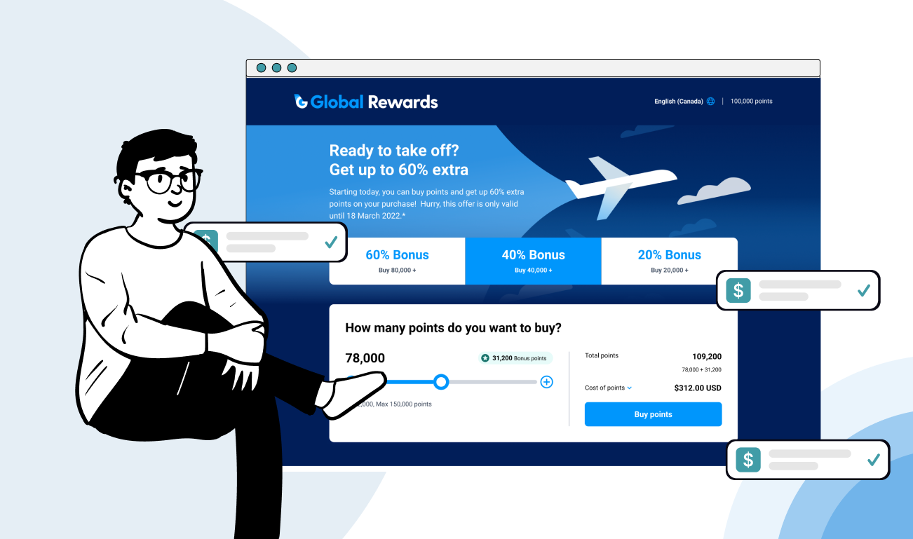 “Buy” is one of the most profitable product in Plusgrade’s loyalty commerce portfolio, allowing airlines and hotels to sell points and miles directly to members. Despite its revenue contribution, the product’s design had stagnated: an outdated single-page flow with dropdowns exceeding 200 options, no contextual information about purchases, and limited mobile usability. Only frequent, savvy loyalty members understood what they were buying, leaving mainstream users confused.